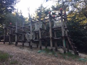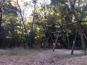 保田ヶ池公園は林の中に9つのアスレチックが存在。