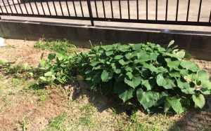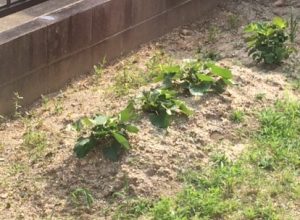 葉やツルががすごい勢いで広がっていくので、ツル返しと言って定期的に広がった部分を折りたたむように、寄せましょう。