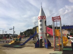 外へ出るとまず現れるのが、「ロケット型総合遊具」
