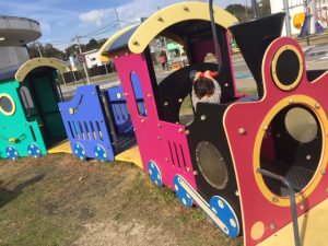 他にも、よちよち歩きの子で遊べるような置き型列車や車も数か所にあり、